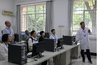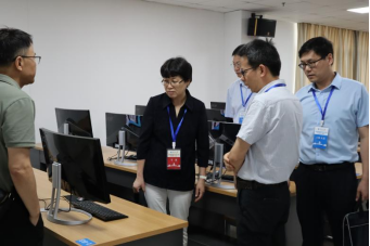 专家前往2号教学楼观看虚拟仿真实验室演示