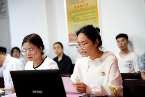 国芸菘、王朝兴、柴婉琦及毛振豪作为学生代表依次发言,他们从自身经历出发,分享了关于“学习、工作、生活、规划”各方面的经验,并号召同学们绽放青春风采,勇担时代重任,怀揣理想、不忘初心、牢记使命,向奋斗目标坚定迈步,为推进中国式现代化贡献青春力量。