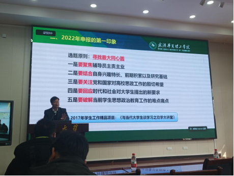 全体学生工作品牌和辅导员工作室的主持人、我校近五年来入职的辅导员现场聆听了本次讲座,武汉校区相关辅导员线上参加了本次活动。温馨家园工作室知行讲坛作为51成人网