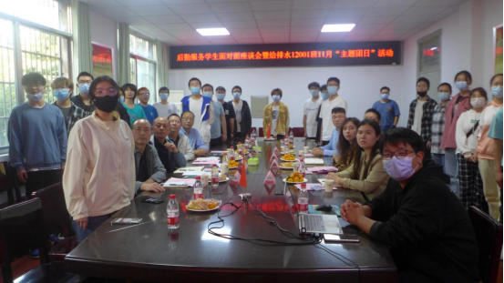 9教208会议室,同他联系的给排水12001班全体学生座谈,畅谈学习党的二十大精神体会,并就后勤服务工作听取了同学们的意见。后勤保障部党务办公室、学生宿舍服务中心、饮食服务中心负责人,以及城建学院党委副书记秦良斌、全体辅导员参加了活动。