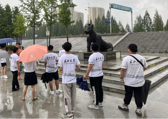 下午,大家冒雨前往铁牛矶,对荆江大堤背水带公厕建设的周边环境进行实地调研。在住建局副局长杜琴的讲解中,实践队一同聆听了镇安寺铁牛的传奇故事,回顾了一九九八年抗洪抢险的感人事迹,共同上了一堂生动的大思政课。