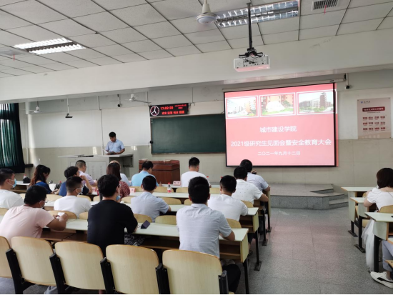 东校区12教104室召开了2021级研究生新生见面会暨安全教育大会。学院院长曾磊、院党委书记孙涛、副院长张继承、副院长肖桃李、党委副书记周俊、土木与工程管理系副主任赵云锋、建筑与规划系主任丰燕、给排水科学与工程系主任黄向阳、科研办公室主任张瑞、2019级学生代表刘翔龙及城建学院2021级全体102名研究生新生参加了本次会议。会议由院团委副书记何儒权主持。