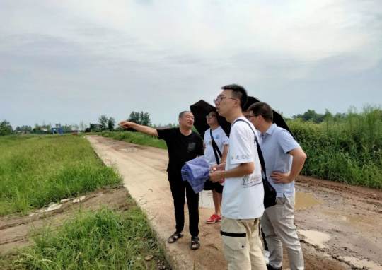 见面会结束后,大家进行了合影留念。紧接着,在放置好行李物品之后,实践队员冒着大雨先后乘车到牌坊村和马店村进行了实地走访,形成初步了解。牌坊村党支部书记姜保梅就该村基本情况做了介绍,并重点介绍了该村依靠超级水稻种植、流水养鱼项目、光伏发电站、猫砂厂等主导产业,带动农民就业增收的情况。马店村党支部书记任善炯带领师生前往正在该村建设的荆州市殡葬管理所工地,就如何围绕该民生工程做好配套服务,发展该村特色行业同师生进行了交流。