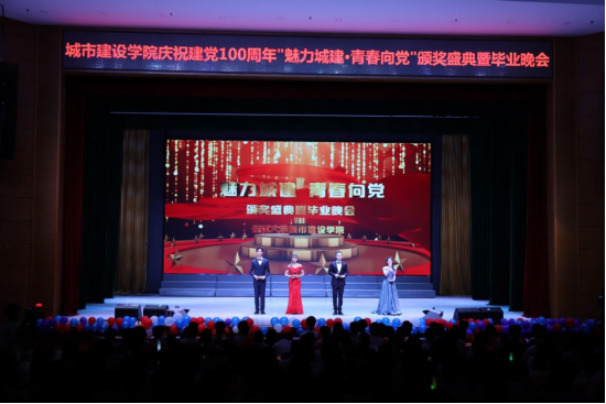 庆祝建党100周年“魅力城建·青春向党”颁奖盛典暨毕业晚会在此浓情上演。校党委书记朱业宏,学校教务处、学工部、研工部、校团委等职能部门领导老师以及城建学院全体师生参加本次活动。