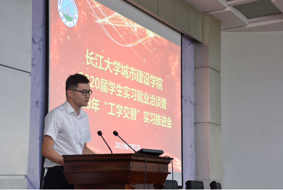 中国一冶荆州公司人力资源部长胡熙代表企业对学院提前谋划就业工作、做实做细专业实习实践、为企业输送高质量人才表示赞许和感谢,同时,他向同学们发出热烈的邀请,欢迎大家到土建施工一线感受中国速度、实现个人理想。