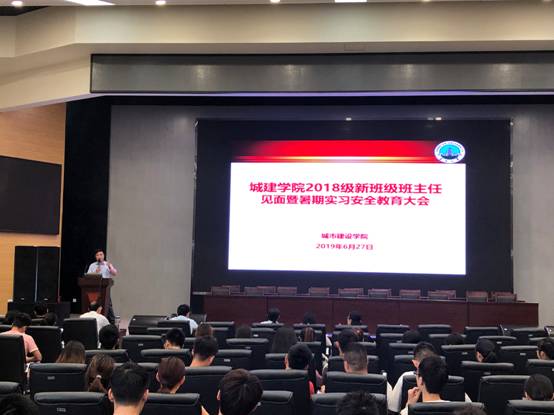 在西校区农科大楼1058报告厅举行了新班级班主任见面暨暑期实习安全教育大会。各班级班主任、土木工程系主任肖桃李、土木工程系孔祥国、工程管理系姚金星、院团委书记盖东芳,院党委副书记周俊等老师参加了此次会议,会议由18级辅导员魏民生主持。