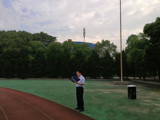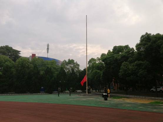 在西校区田径场举行了升国旗仪式。院党委副书记周俊、学工办主任颜学俊和年级辅导员及城建学院全体大一学生参加了本次升旗仪式。