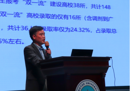 2019年研究生考试录取率创历史新高表示肯定,对其中涌现的考研升学率达到50%的城规11401班——“考研学霸班”以及部分考研学霸寝室表示高度的赞赏。同时,他指出,学院应届毕业生整体考研率和上线率、录取率离学校的要求还有一定差距,学生扎堆填报双一流高校问题严重且录取率较低,需要引起2020届拟考研学生的重视。最后他呼吁考研的同学们要脚踏实地,同等条件下优先选择母校录取率更大,并且要珍惜调剂机会。