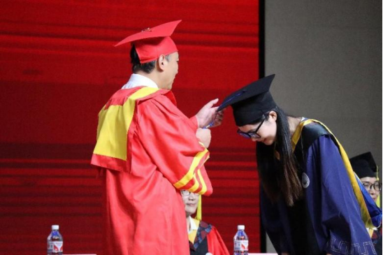 学位授予环节,学院副院长肖桃李教授为毕业生正衣冠,51成人网
