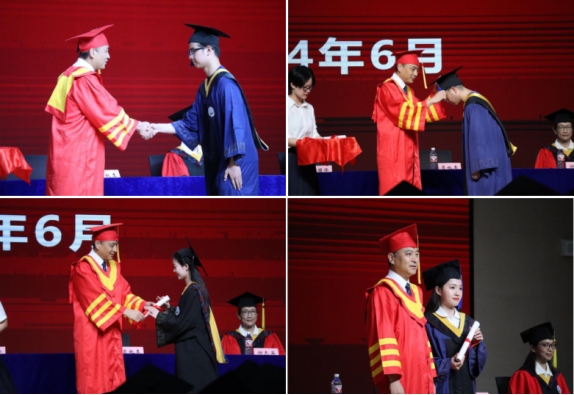党委副书记、副校长杜国锋教授为2024届毕业生授予学位。鞠躬握手、拨穗正冠、扶正流苏,毕业生们一一与杜书记合影。现场庄重深情的仪式感让大家终身难忘。