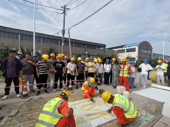 随后,全体师生观看了现场施工作业人员对相关管道修复技术环节的操作展示,并与施工人员亲切互动交流。部分兴趣浓烈的同学在专业技术人员的指导下,对QV潜望镜进行了实操体验,对管道修复相关设备有了更加直观、深刻的认识。