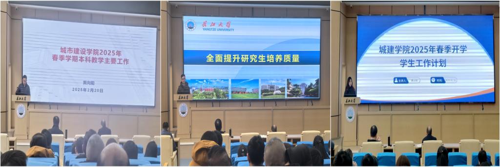 会上,院领导根据个人职责和分工,对本学期工作进行安排和部署。黄向阳从教风建设、专业评估、竞赛指导、微专业申报等方面对教学工作作了详细安排;赵云峰对2025年学院科研考核目标和科研工作计划做了详细说明,并提出具体要求,同时就如何全面提升研究生培养质量提出系列举措;周洁如从学风建设专项行动方案、英语四级提升工程、考研就业攻坚计划、科创竞赛突破行动、毕业生跟踪调查等重点介绍了2025年学生工作总体规划。