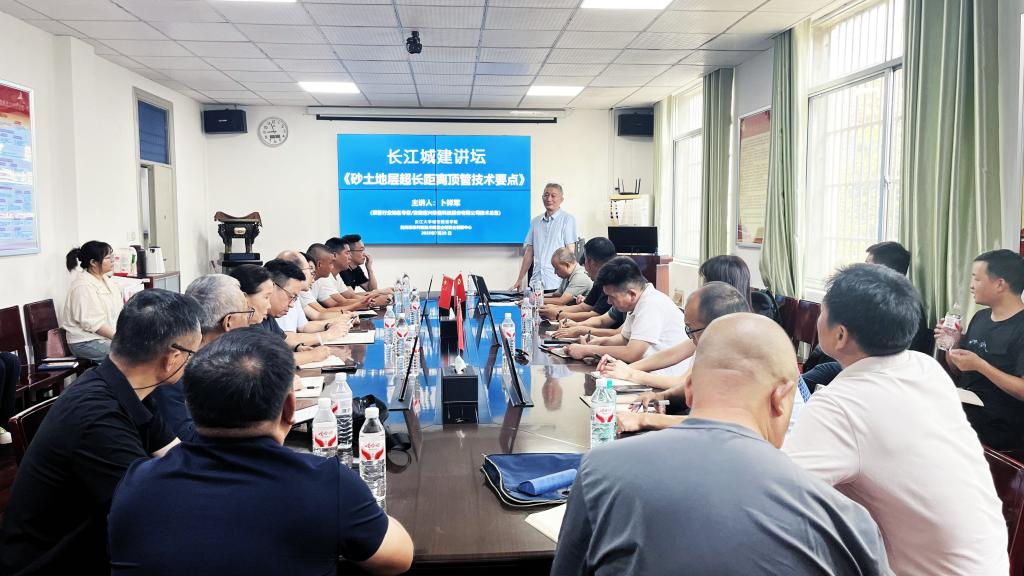 (通讯员 蔡威威)7月20日上午,安徽唐兴装备科技股份有限公司技术总监卜祥军一行来校交流,围绕砂土地层超长距离顶管技术,卜祥军介绍了顶管施工的工作原理,重点阐述减小顶力的新方法与纠偏原理。结合仙桃市城东再生水综合利用工程具体实例,卜祥军围绕“砂土地层”与“超长距离”两大挑战,从设备优化、高效减阻、精准控制、沉降防控、设备保障等提出可行性解决方案。