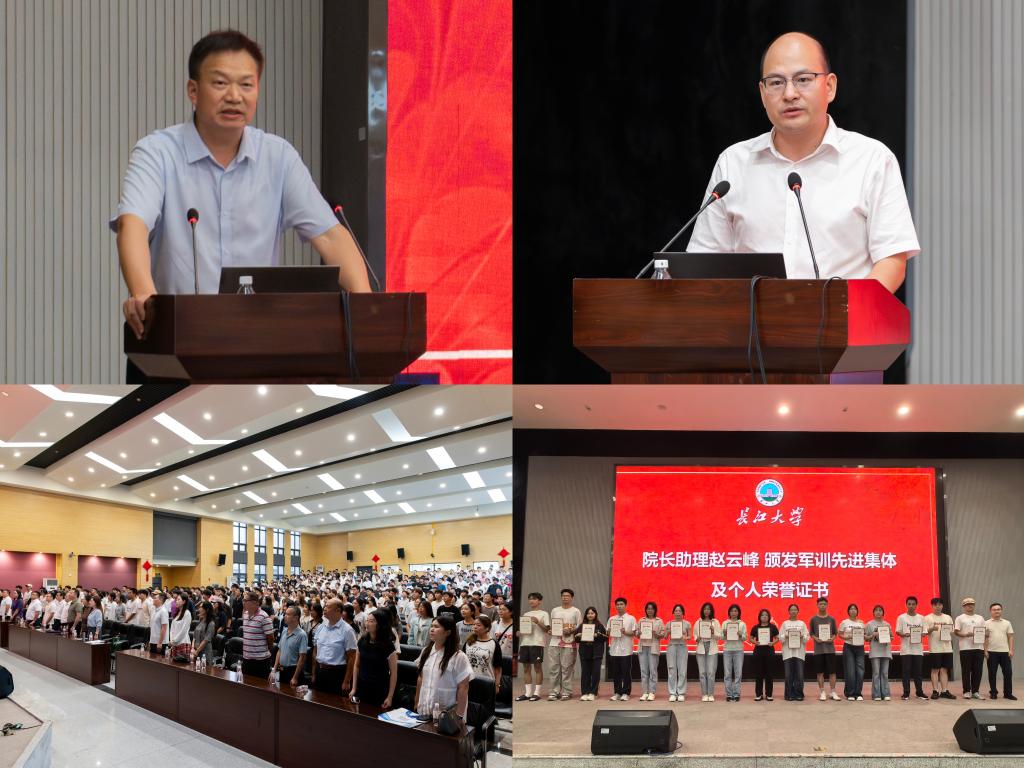 会议在庄严的国歌声中拉开序幕。副院长黄向阳宣读了军训表彰文件,院长助理赵云峰为军训先进集体与个人颁发了荣誉证书,充分肯定新生们在军训期间展现的优良作风和演讲比赛中的个人风采。