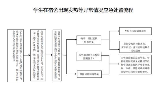 4.如发现新冠肺炎疑似病例,学校立即启动应急处置机制,第一时间向辖区疾病预防控制机构报告,配合做好流行病学调查、密切接触者集中隔离医学观察和消毒等工作。对共同生活、学习的一般接触者要及时进行风险告知和健康监测。