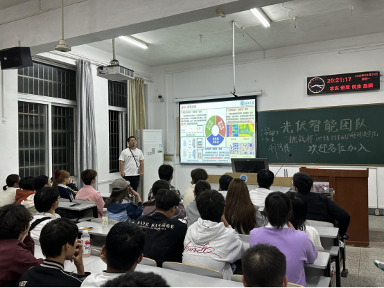 在西校区6教105教室举办面向2025级新生的挑战杯宣讲会,作为2025级新生入学教育“启航计划”系列活动之一。本次宣讲聚焦“光伏数智化”核心领域,由学院光伏智能团队池方爱教授主讲,系统分享团队的研究成果与挑战杯赛事备战经验,为2025级新生搭建起科研创新与赛事实践的衔接桥梁。