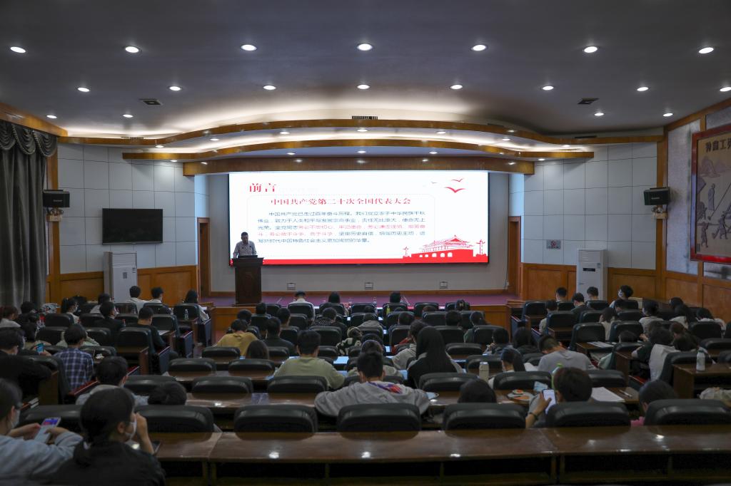 于11教学术报告厅开展主题教育专题党课学习活动。城建学院党委副书记秦良斌以“深刻认识把握中国共产党人的初心和使命”为题开展讲座,学工办副主任魏民生、党建秘书胡冰恒、院团委副书记何儒权及学院全体学生党员参加学习。