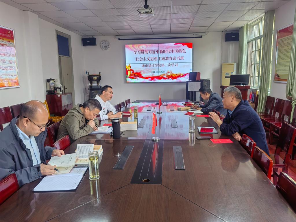 在9教208会议室召开学习贯彻习近平新时代中国特色社会主义思想主题教育读书班第二次集体学习,会议由党委书记彭飞主持,学院中层领导干部参会。