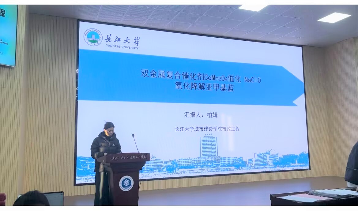 2023级研究生柏娟在论坛中围绕“双金属复合催化剂CoMn2O4催化 NaClO氧化降解亚甲基蓝”主题进行了汇报,主要为纳米CoMn2O4尖晶石催化剂在NaClO活化下应用于废水处理,并展示了该体系在有机污染物氧化降解方面的巨大潜力,特别是在实际应用中的环保性和成本效益。