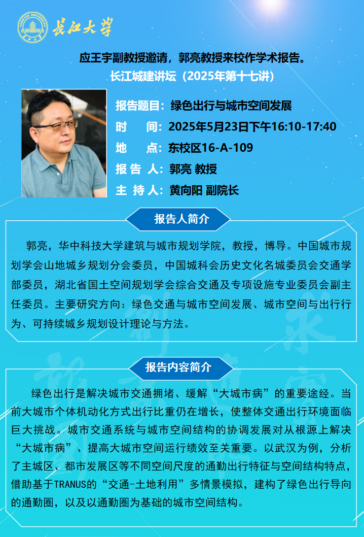 长江城建讲坛2025年第十七讲:绿色出行与城市空间发展