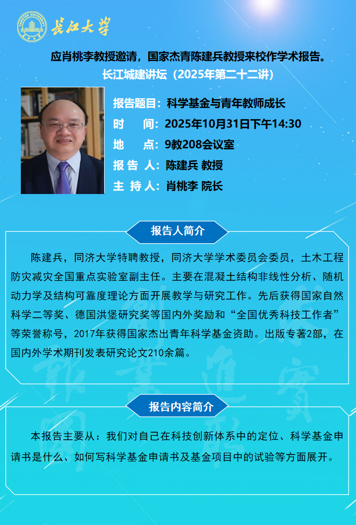 长江城建讲坛2025年第二十二讲:科学基金与青年教师成长