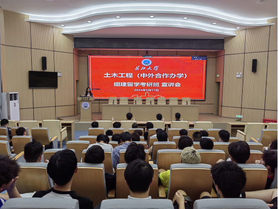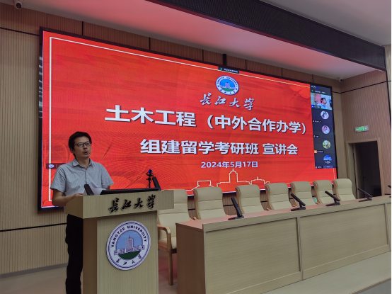 (通讯员 张琳)5月17日晚,土木工程(中外合作办学)项目组建留学考研班动员会在11教学术报告厅召开,城建学院副院长黄向阳、院党委副书记周洁如、中外合作办学项目主任袁洪强、学工办主任魏民生及2022级土木国际学生和家长参加了会议,会议由院党委副书记周洁如主持。