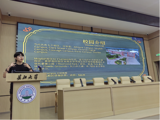 20级土木国际学生陈鑫于2023年9月赴爱尔兰香农理工大学交流访问,现已拿到伦敦大学学院(UCL)的研究生offer。陈鑫现场向学弟学妹们讲述在爱尔兰的学习生活,并在申请国外研究生的准备事项上给予建议和指导。