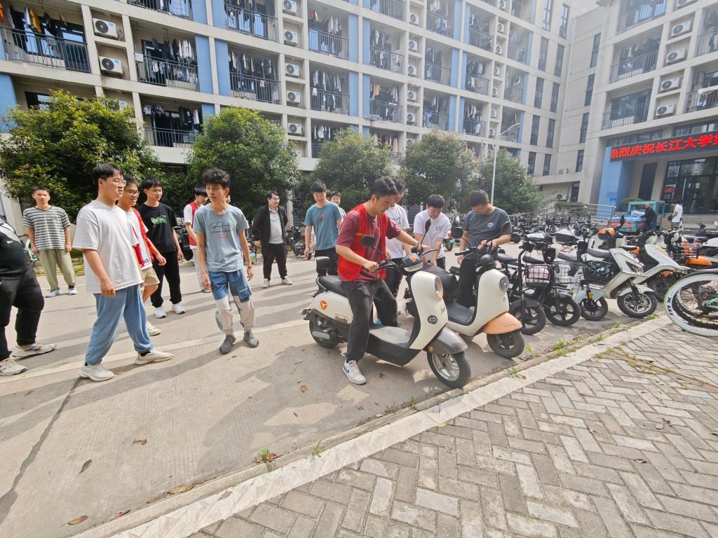 的志愿者们在南苑22栋开展了我为同学做实事之“百名青年清理校园电动车”活动。此次行动旨在通过规范摆放车辆,来号召同学们规范停车、文明停放,共同营造安全畅通的住宿环境。