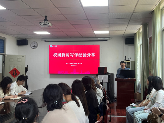 新闻宣传事业高质量发展注入新的活力,4月25日下午,城建学院邀请校党委宣传部杨云锋老师为学院团学骨干进行新闻写作专题培训。学院党委副书记周洁如、团委书记盖东芳、22级辅导员杜琛及其他行政人员和专任教师参加了此次培训。