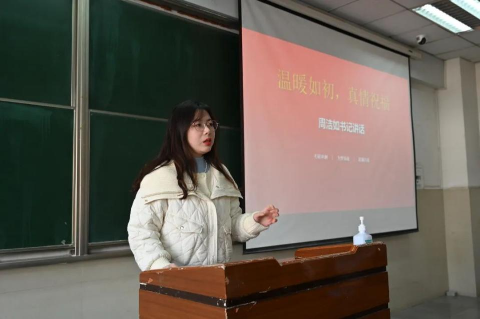 活动伊始,刘安琪老师、魏民生老师分别就考前注意事项、考前纪律做出提醒。随后院党委副书记周洁如以“诚信、坚持、自信”寄语同学们,一是要诚信应考,二是要坚持不懈,同时鼓励同学们要相信自己,拒绝焦虑。