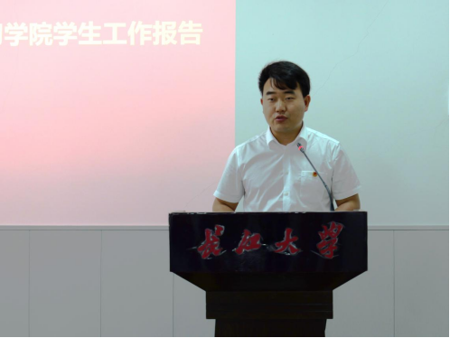 院团委副书记何儒权代表学院团委作学院学生工作报告。他从思想引领、学风建设、文化育人、社会实践等方面介绍了学院的成绩:青年大学习完成率位居前列、获评学校五四红旗团委、“互联网+”获得省赛铜奖、“挑战杯”闯进省赛……一项项学院学生工作取得的成绩如数家珍,让参会代表倍感鼓舞。“下一步,学院将继续大力支持院学生会、研究生会的工作,希望大家继续紧跟党走、再创辉煌!”全场响起热烈的掌声。