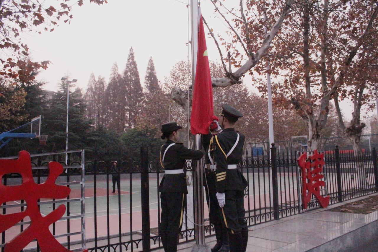 仪式上,全体师生高唱国歌,庄严肃穆,向五星红旗行注目礼。礼毕,在场师生齐声诵读《和平宣言》,“巍巍金陵,滔滔大江……”一字一句表达对南京大屠杀死难者的悼念与哀思,激起了师生内心深处的家国情怀,喊出了当代中华儿女的强国决心。全体成员带着沉痛哀思伫立在国旗下默哀一分钟,共同缅怀遇难同胞,铭记中华民族的苦难岁月。