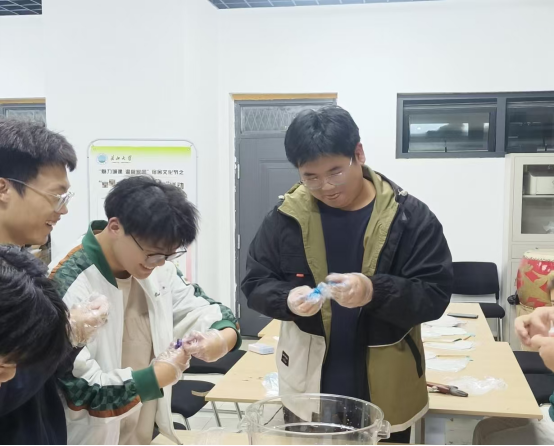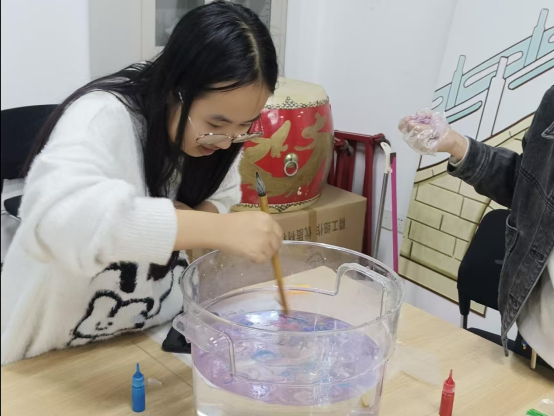 漆扇制作开始前,王瑞言向参加活动的心育委员们介绍了漆扇的历史和制作步骤,并演示了漆扇制作流程。随后,同学们在工作人员的指导和帮助下,积极参与其中。
