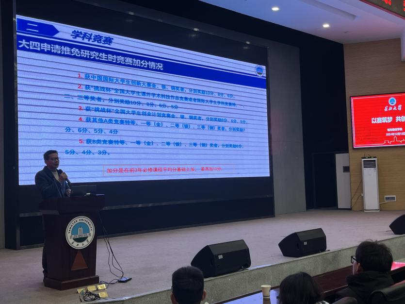 (通讯员 李进 张瑾瑜)为激发学生创新创业热情,提升科创竞赛能力。12月12日晚7点,学院在西校区农科大楼1058面向2024级全体本科生召开“启航计划第七讲——以赛筑梦,共创未来”竞赛动员会。学院副院长黄向阳、党委副书记周洁如、教师代表黄德文及辅导员袁子昂参加本次会议。
