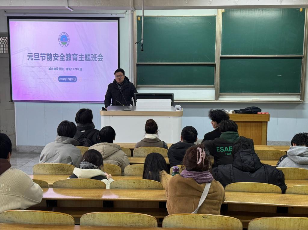 组织全院本科生和研究生开展元旦安全教育主题班会。本次班会主要通过安全微视频、典型安全事故案例分享等形式,对学生进行防诈骗、交通、消防、食品、人身财产等安全常识教育。