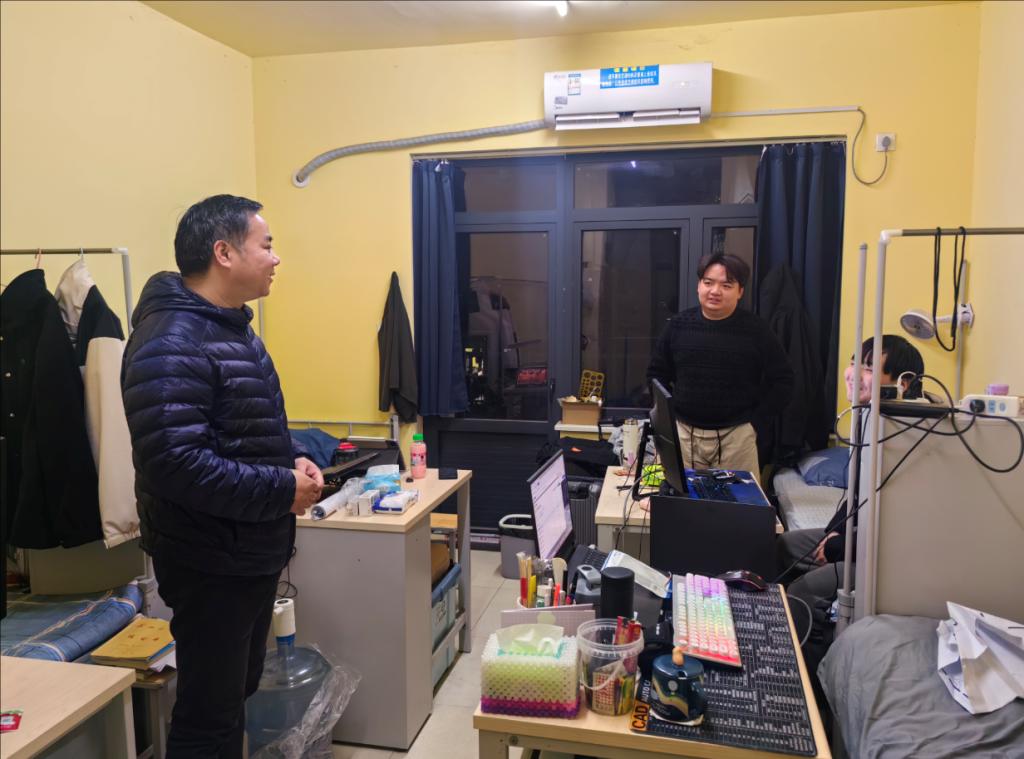 此外,学院安排辅导员在假期进行值班,持续关注学生的安全状况和心理健康。组织班主任走访学生寝室,对学生安全用电、防火防盗等方面及时提醒和督促,准确掌握学生生活与期末复习备考情况,为学生营造一个安全、有序的假期环境。
