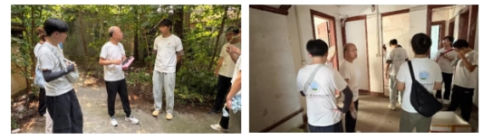 郑辑宏、彭蓉副教授现场引导下,调研以“考古式”逐层推进。先对墙基、灰缝、拱券等关键节点进行勘查,还原最初建设立面;随后精确测量青砖规格,以尺寸差异锁定建造年代;同步通过敲击和拍照的方式对建筑残损状况进行详细的病害记录,建立“编号-定位-描述”三位一体的病害文本,为后续编制结构安全评估与干预方案奠定科学档案,为城市更新中历史建筑的精准保护提供数据支撑。