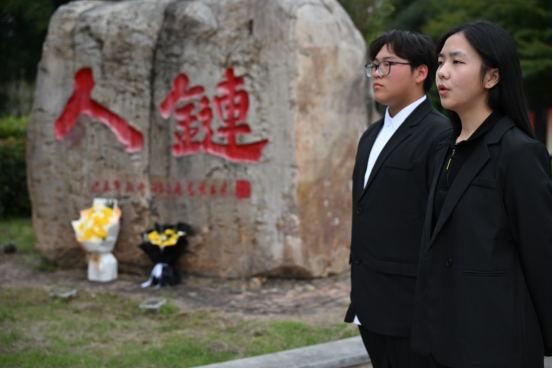 16时,青年志愿者服务支队成员在辅导员袁子昂的带领下,前往荆江大堤宝塔湾“人链”纪念碑举行祭奠仪式。学生代表黄旭上前仔细擦拭碑身,全体成员肃立默哀一分钟,深切悼念英烈。随后,青支队成员彭文龙敬献鲜花,主持人陈紫轩、曹鑫赟动情讲述了“人链”英雄的感人事迹。他们表示:“15双手臂在这里铸就了生命的防线,三位烈士的壮烈牺牲,将‘无私奉献’的精神深深植入每一位长大学子的心中。”