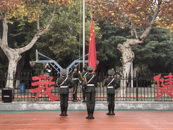 伴随着晨光,升旗仪式正式开始,国旗护卫队队员身着整齐制服,迈着坚定的步伐,护送五星红旗缓缓走向升旗台。全体师生庄严肃立,向国旗行注目礼。当激昂的《义勇军进行曲》奏响,五星红旗冉冉升起,国歌声与风声交织,师生眼中满含对祖国的崇高敬意与深厚热爱。