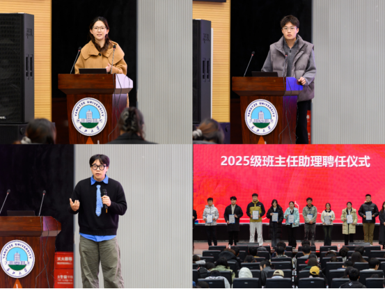 在优秀学生代表分享环节,于敏芮从学业巩固、目标设定和生活规划等方面提出实用建议;苏佳俊结合自身参与“挑战杯”的经历,鼓励同学们勇于尝试、坚持努力;许家兴则分享了竞赛对个人能力提升的积极影响。宣讲会期间还举行了班主任助理聘任仪式。