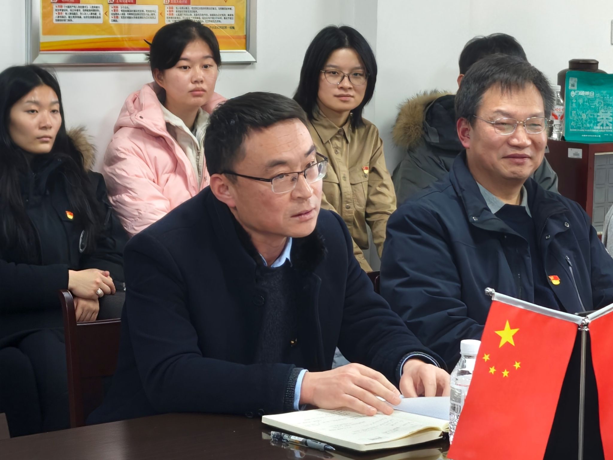 研究生土木党支部在9教208召开12月主题党日活动。校党委常委、副校长吕一兵莅临指导,学院党委书记谌姿、党委副书记周洁如及支部全体党员参加活动。活动由支部书记盖东芳主持。
