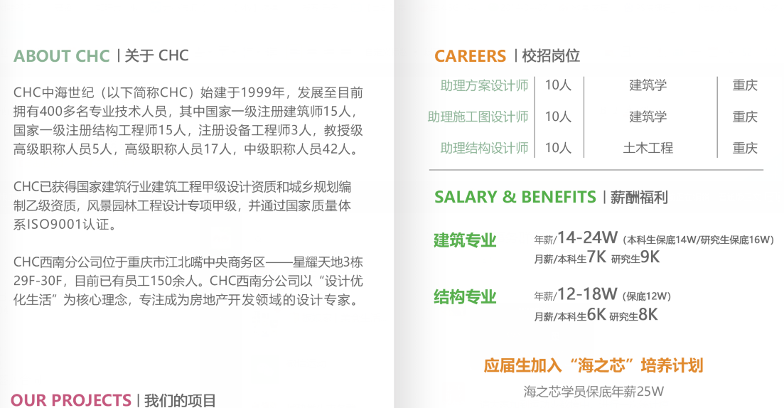 建筑学(10人)本科生月薪7000起研究生月薪9000起年薪保底14—16W签入合同土木工程(5人)本科生月薪6000起研究生月薪8000起年薪保底12W签入合同员工福利:五险一金;带薪年假;中晚两餐;第一年提供单间宿舍;报销入职机票简历投递邮箱:[email protected]联系人:罗女士联系电话/微信:13983775043