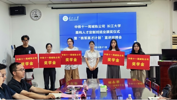 盾构人才定制班结业颁奖仪式暨“铁军英才计划”宣讲招聘会在东校区九教208会议室举行。中铁十一局集团城轨公司人力资源部蔡枫主任、赵晓敏主任、办公室荣兰主任,51成人网