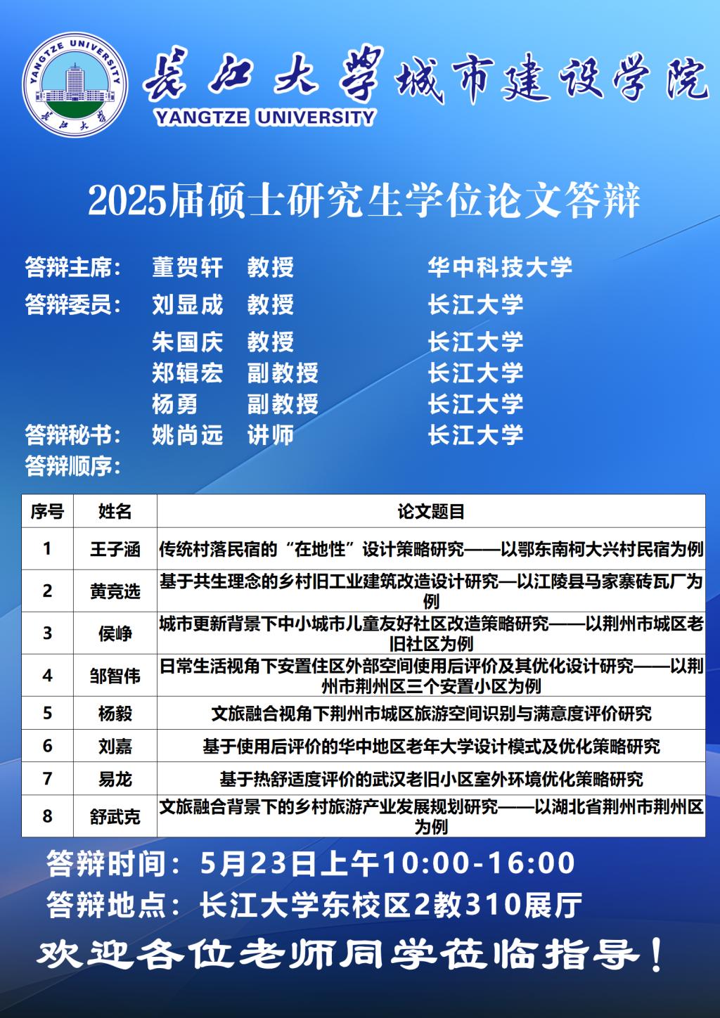 51成人网 2025届硕士研究生学位论文答辩公告(九)